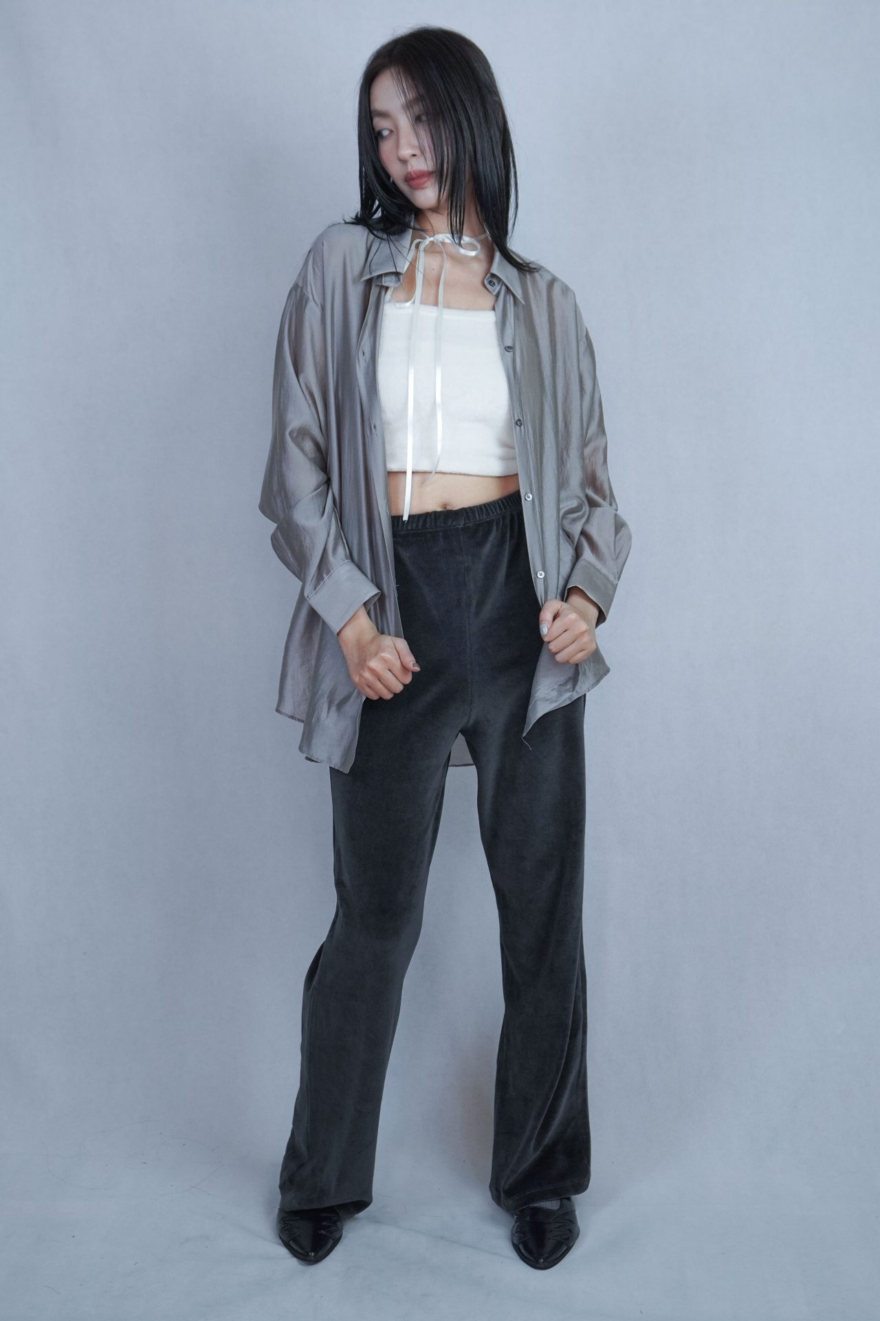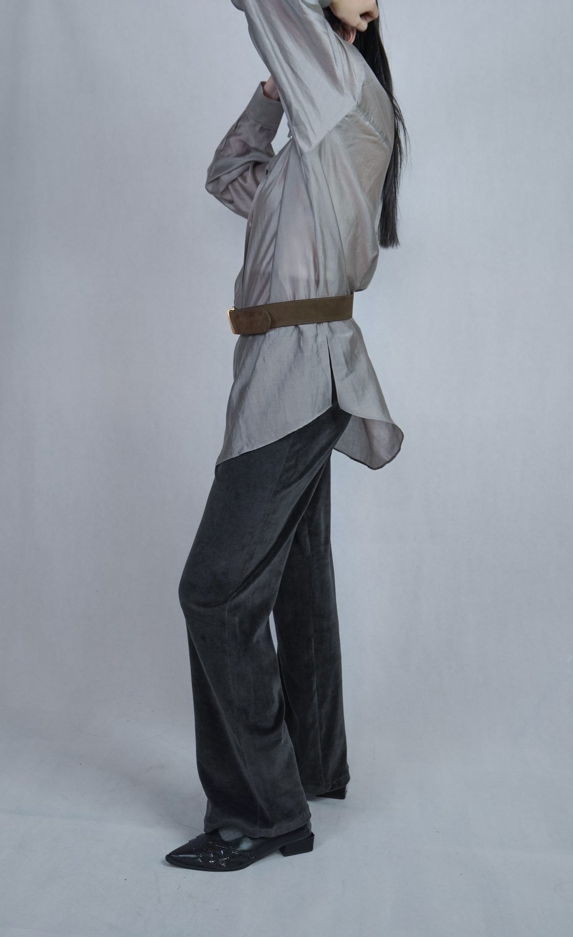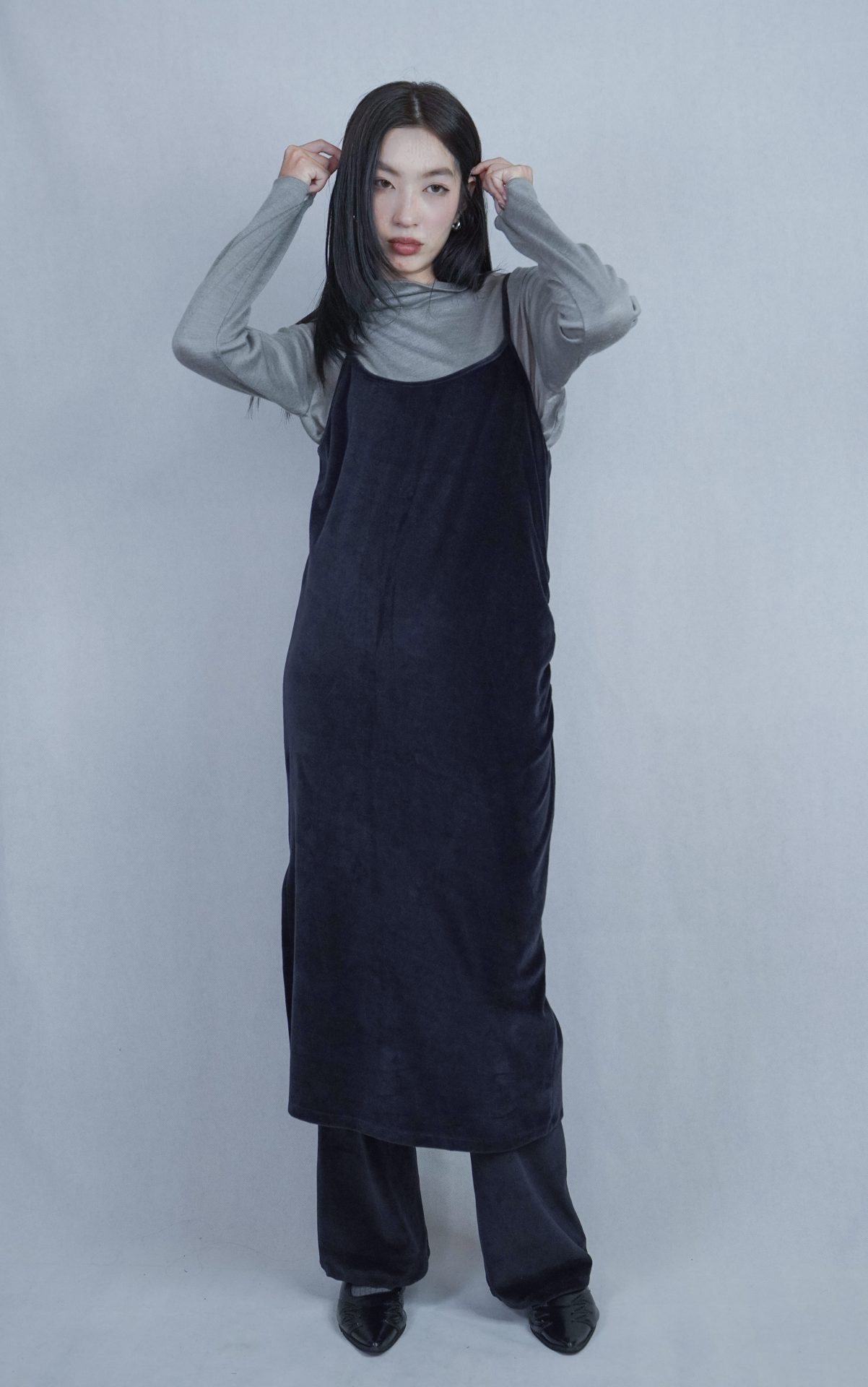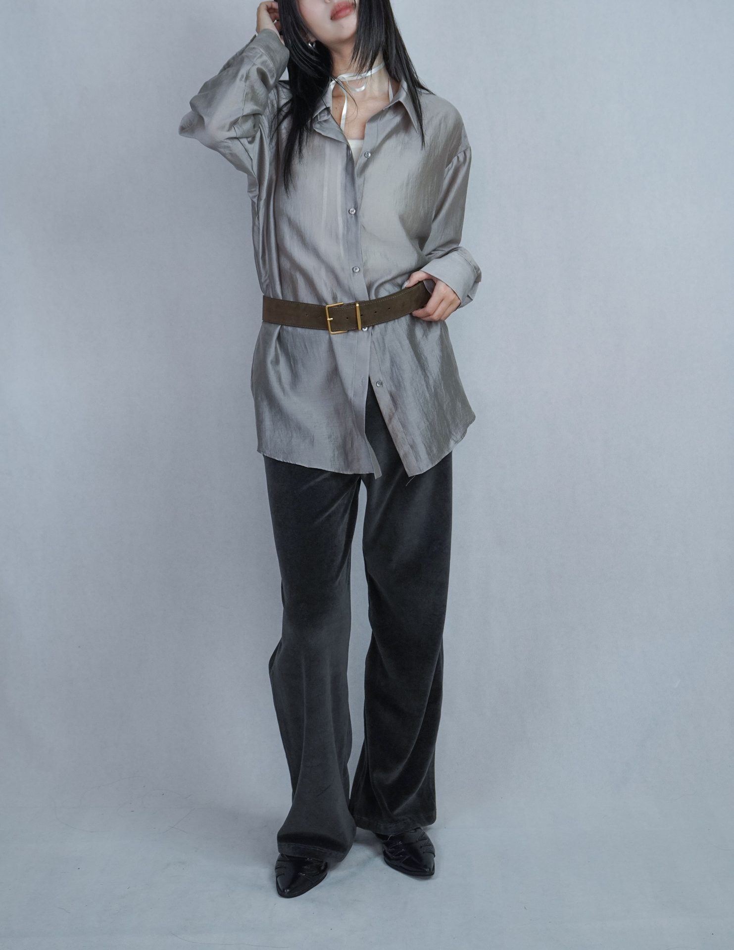 可搭配30%wool 小褶領基本款長T,帶表面微光