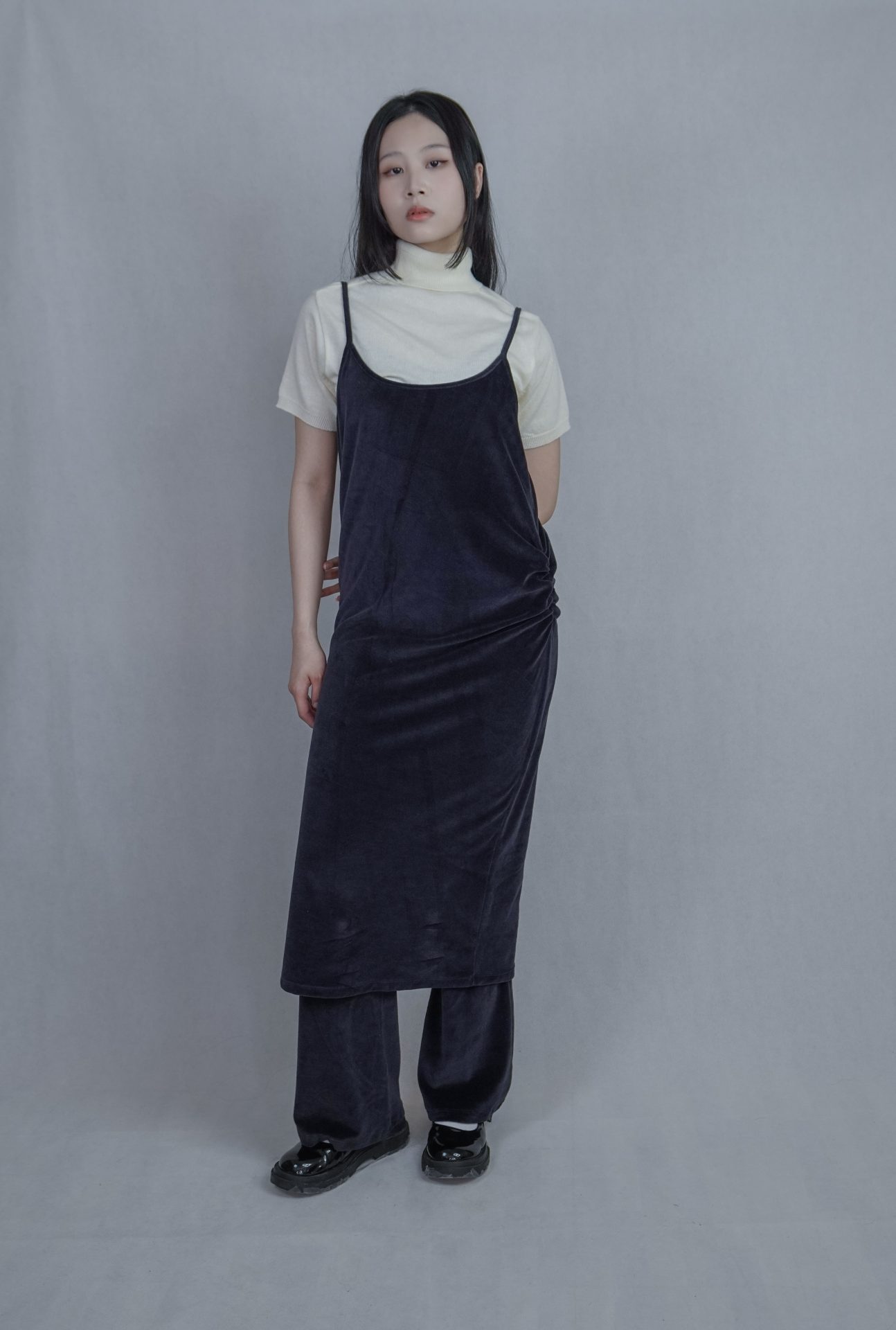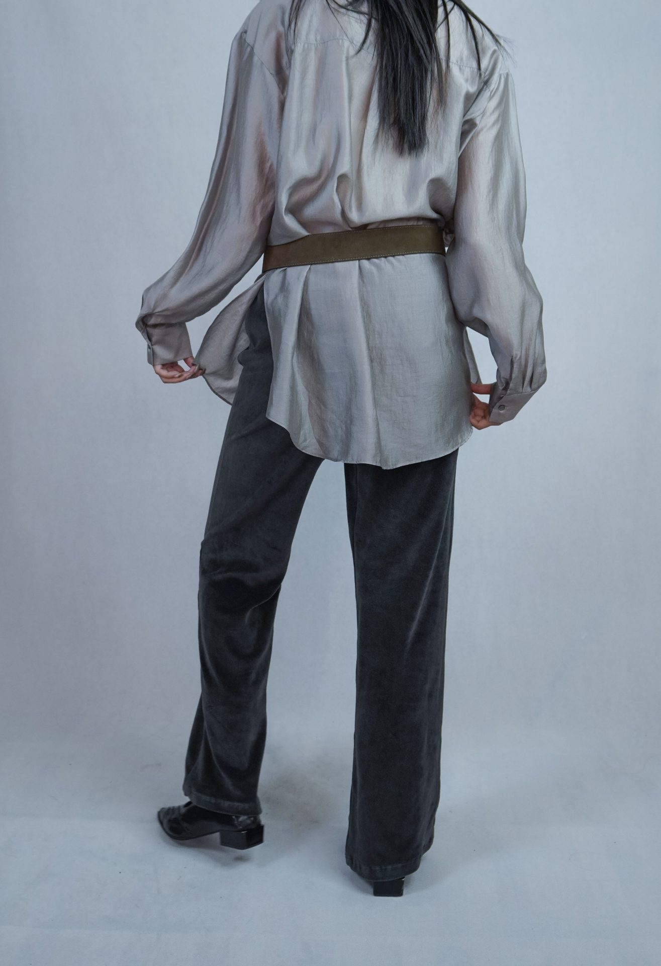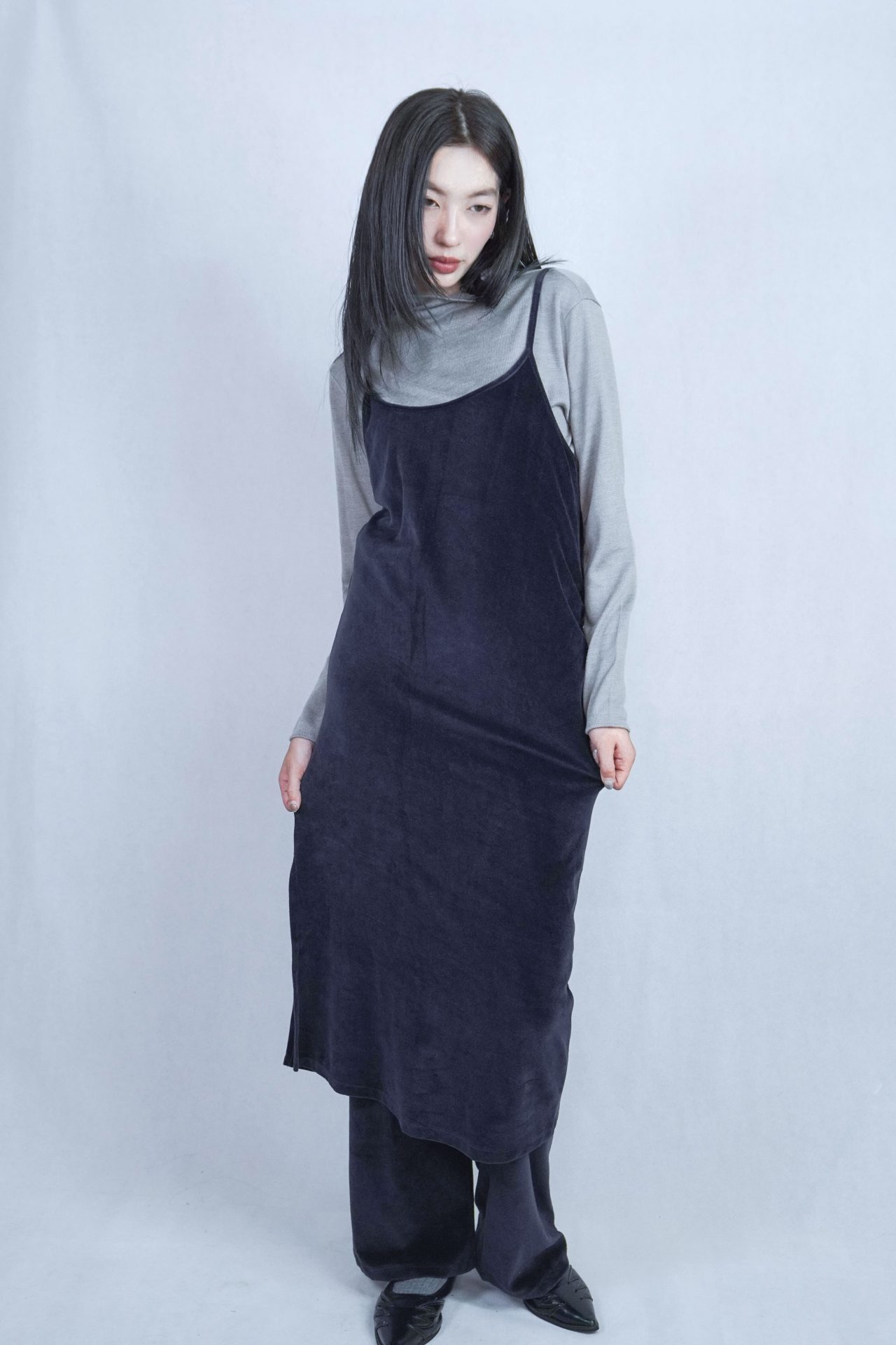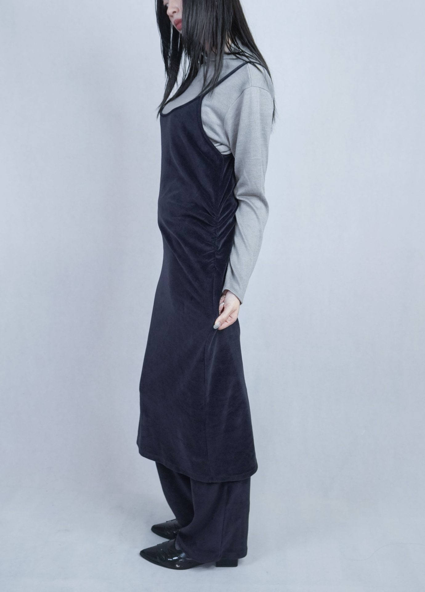 可搭配30%wool 小褶領基本款長T,帶表面微光