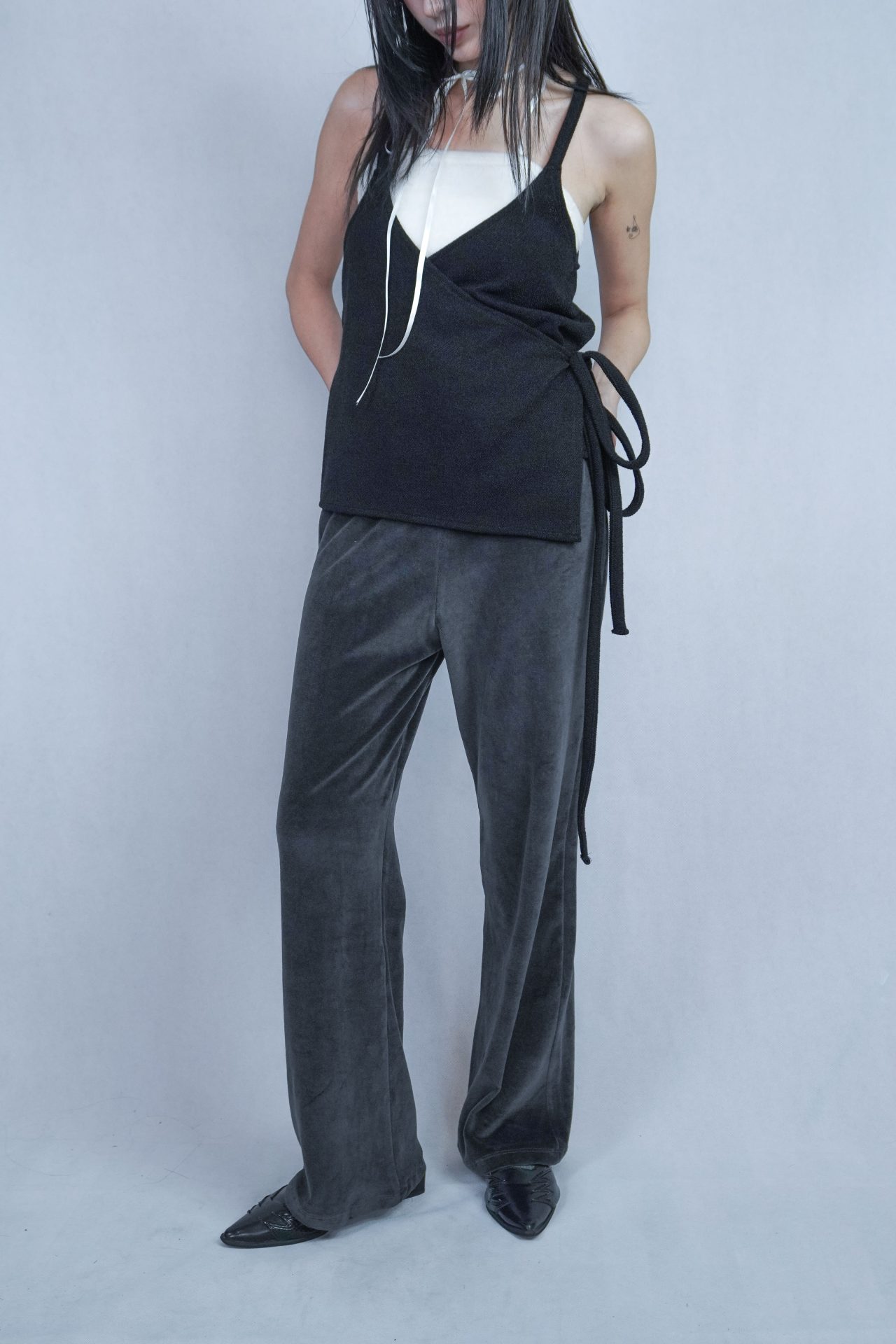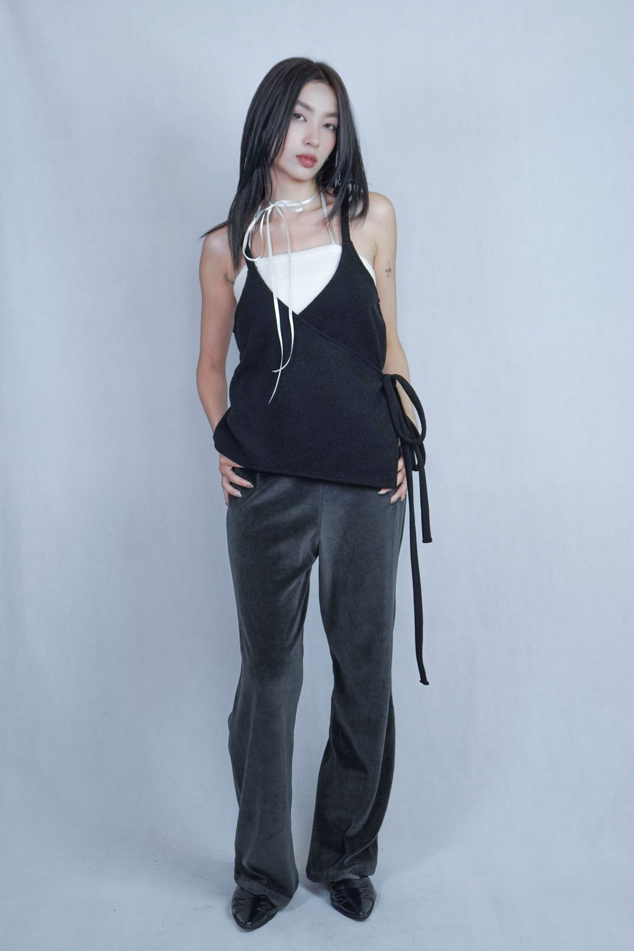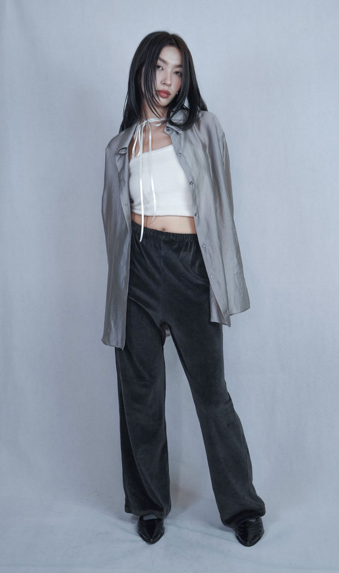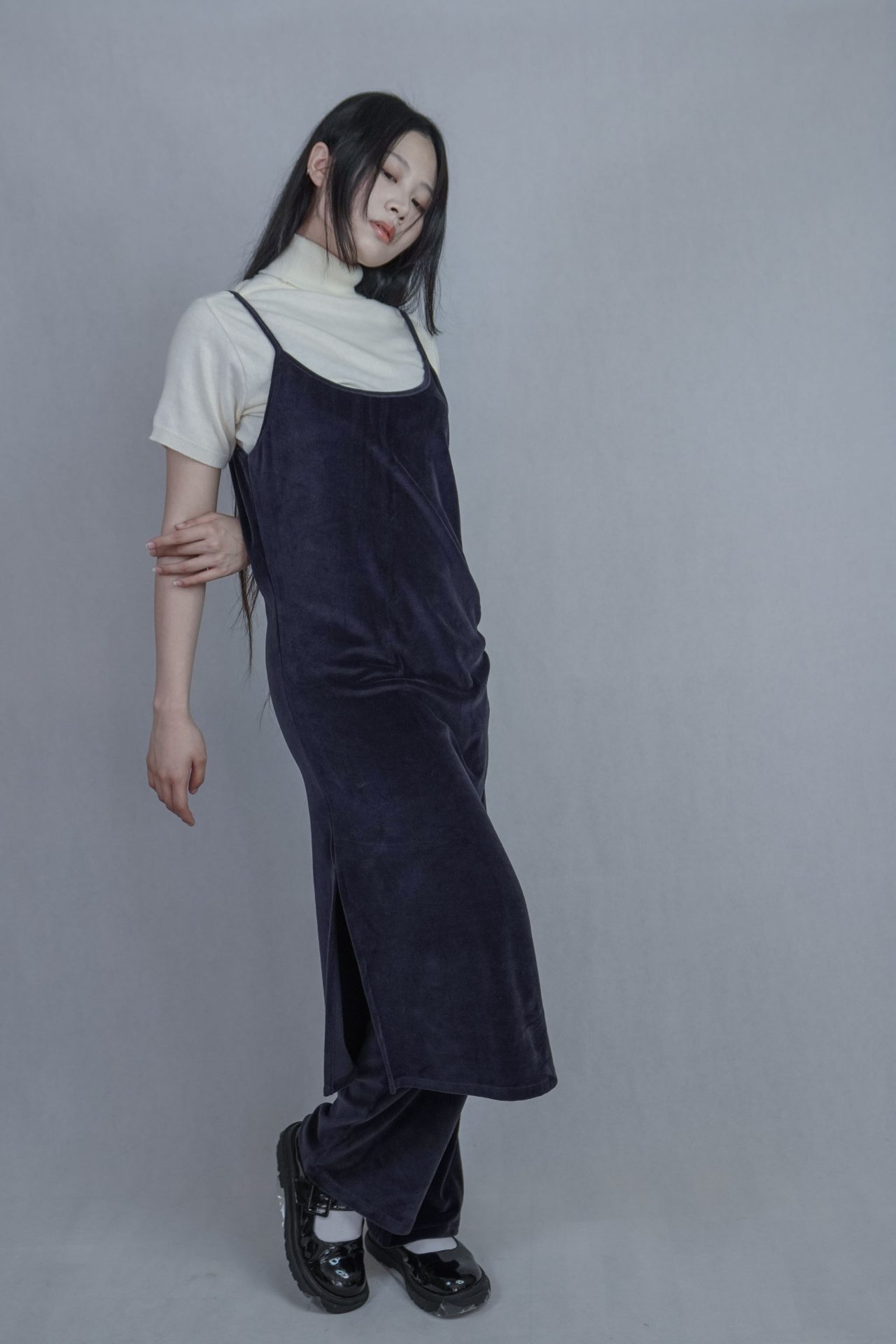 可搭配30%wool 小褶領基本款長T,帶表面微光