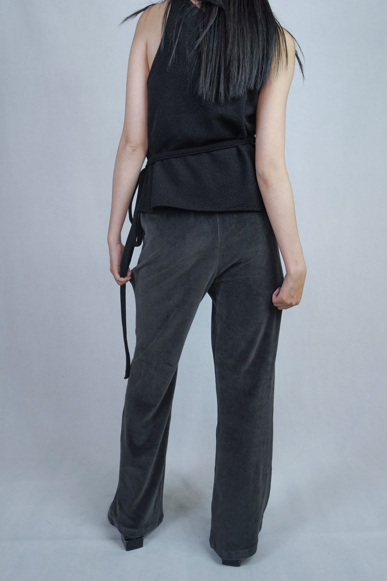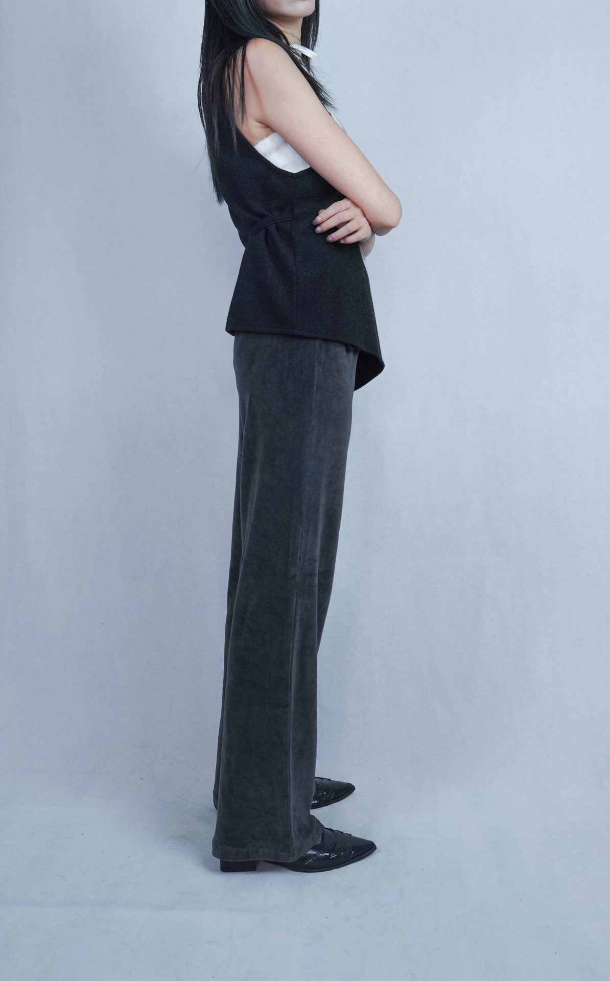 搭配絨布喇叭褲成套俐落,單穿簡約時髦