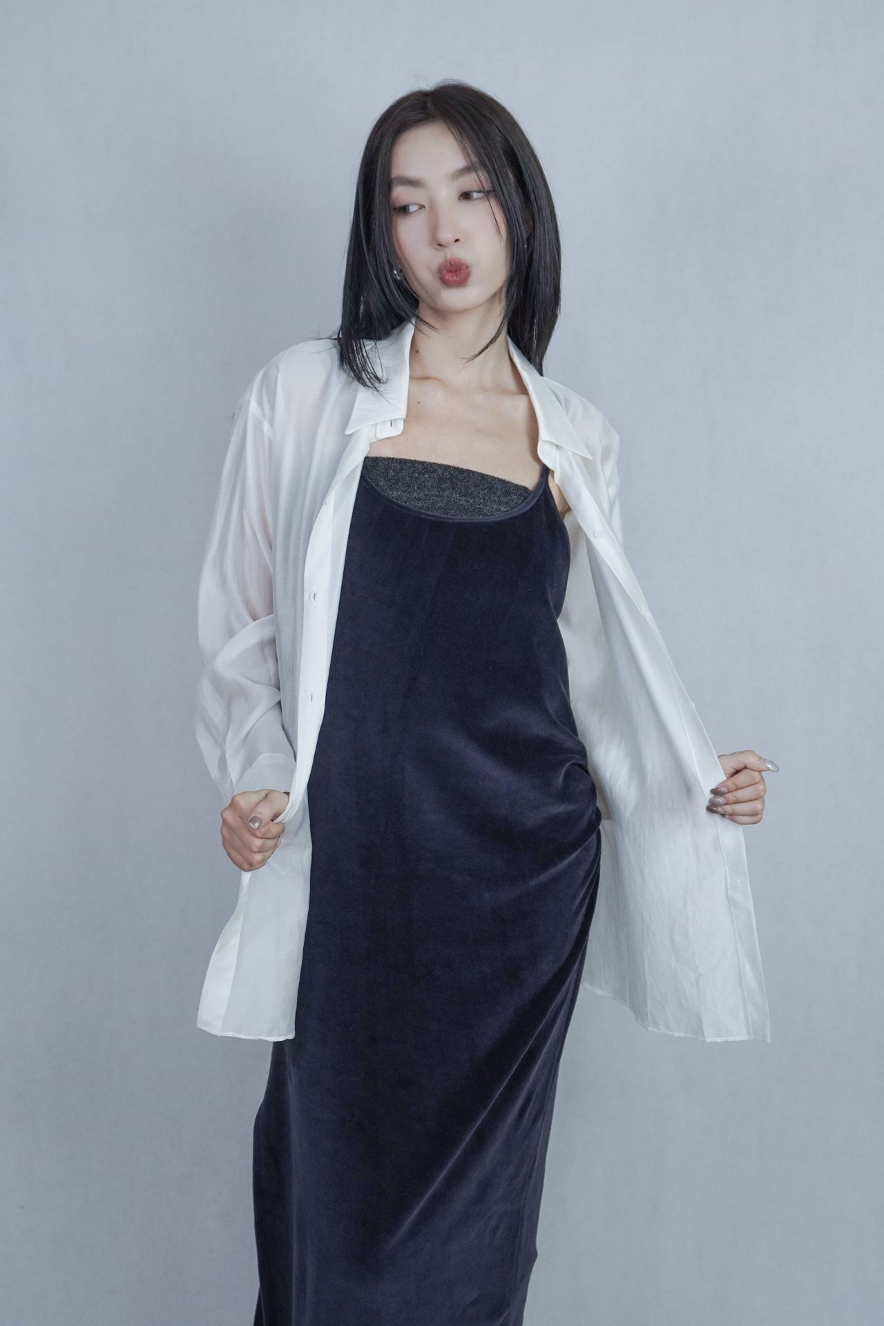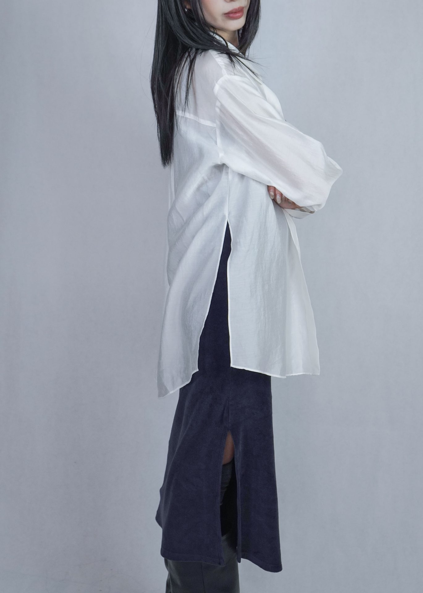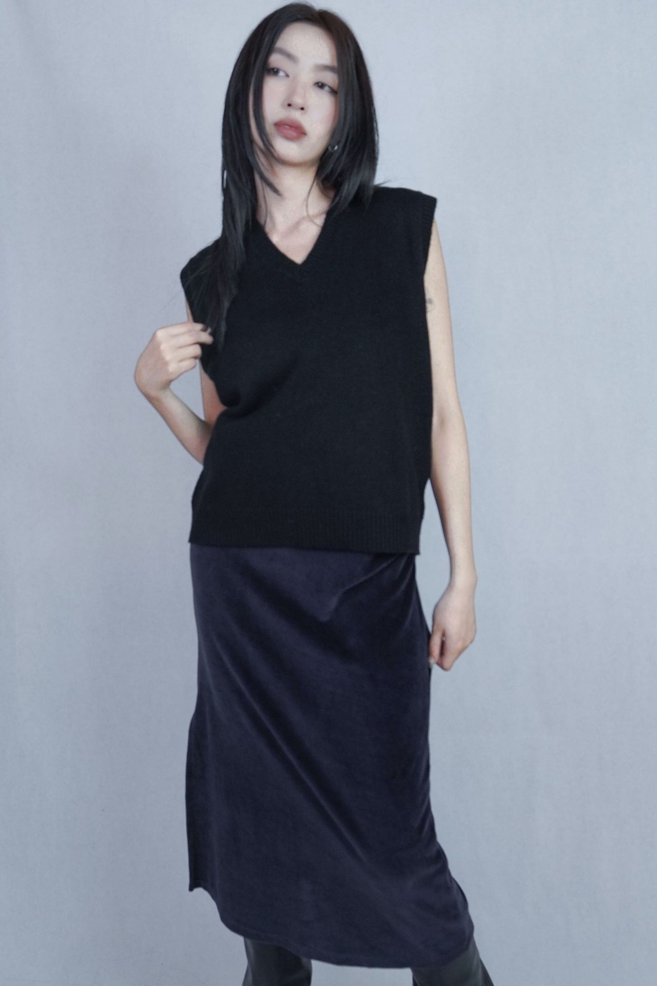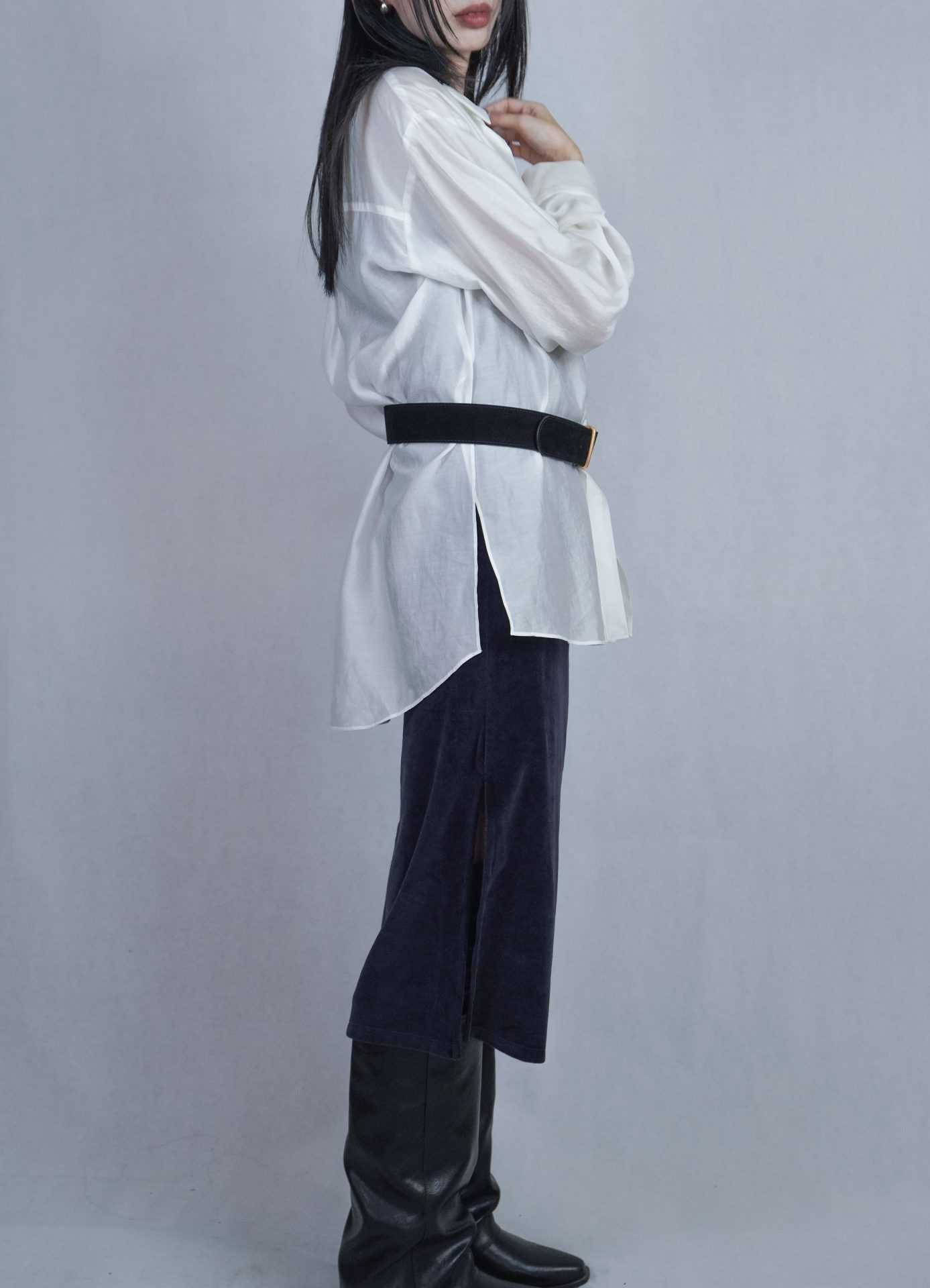 – 側邊縮褶呈現設計版型,蜜桃絨質料舒適質感 搭配絨布喇叭褲成套俐落,內著內搭及單穿簡約時髦 – 供貨狀況: 現貨